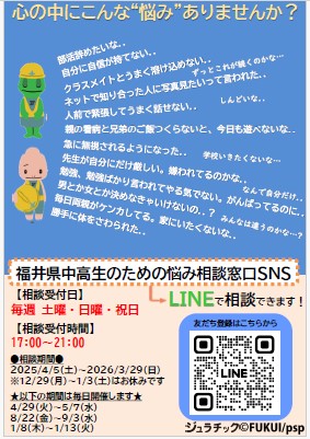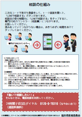『福井県中高生のための悩み相談窓口SNS』よりお知らせ