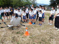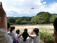 災害時に救援物資をドローンで輸送する敦賀市の訓練を見学しました。校庭から見える山の向こうからドローンが迫ってきました。着陸後、物資が降ろされ小・中学生に水や食料が配られました。担当の方のお話を聞き、災害対策やドローンの仕組みを教わりました。私たちの生活に身近なコンピュータやインターネットが人の命を守るために使われるのですね。今日の貴重な経験から災害安全に対する意識を高めでいきましょう。