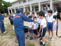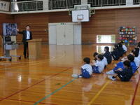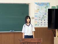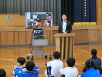 敦賀警察署の生活安全課の方から夏休みの生活についてお話をしていただきました。特にインターネットやSNSの使い方についてお話を聞きました。ゲーム障害やネットの危険性について、具体的な事例をもとに学びました。危険に対して「ことわる」「にげる」「そうだんする」ことが大切。また、自分自身を大切にする「勇気」が必要。教わったことを守り、楽しい夏休みにしてほしいと思います。