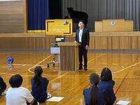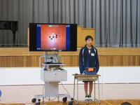 校外学習に向けて全校集会を行いました。6年生からルールやマナー、行程についての説明がありました。タブレットを使って身振り手振りを交えながら、わかりやすく説明することができました。当日は楽しくて学びの多い校外学習になるようみんなで頑張っていきましょう。