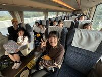 行きはハピラインの電車です。運良く空いていて、みんな座って楽しくおしゃべりをしながら福井まで行きました。