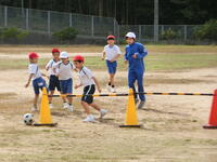 穏やかな秋晴れのもと、小学1~4年生は、校庭で思いっきりサッカーのゲームを行いました。3対3で行うため、運動量はかなり多くなります。それでも、低学年も4年生に負けないボールさばきでがんばっていました。