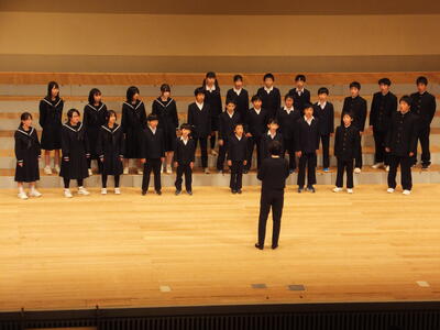 7日(木)に敦賀市民文化センターで開催されました。小・中学生、指揮者、伴奏者が心をひとつに息ぴったりの「RPG」の合唱を披露しました。学んだことを元に、曲想を考えながら強弱や表現を工夫して歌いました。全員がいきいきと伸びやかに歌っていて、会場内に東浦小中全員の思いを轟かせました。合唱後、「少ない人数で、しかも小学1年生からあのステージで歌えること自体がすごい」「これまでの練習の様子が歌声から思い浮かんできた」などのうれしい感想を本校以外の方からいただくことができました。これまでの授業から本番まで、仲間と心を合わせる大切な経験をすることができました。