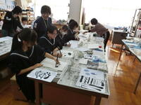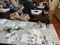 地域の講師の方をお招きして、「己書講習会」を行いました。筆で書いた文字とバブルアートを融合させた作品づくりを全校が体験しました。作品作りの後は、選んだ文字や言葉の理由、工夫した点など、一人ひとりがそれぞれの作品に込めた思いを発表し合いました。できあがった作品は23日(土)に開催される「浦っ子発表会」で展示する予定です。世界でたったひとつの作品をぜひご覧ください。