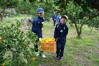 地域の方を講師にお招きして、小学1・2年生が、校庭で栽培しているみかんの収穫をしました。先日、4年生以上はみかん農園での収穫をしてきましたが、1・2年生にとっては初めての作業となりました。ハサミで切り落としたみかんの枝をさらに根元まで切り、みかん同士がぶつかって傷が付かないように丁寧に作業しました。収穫の途中に試食もしながら、3人力を合わせて、収穫作業を楽しみました。