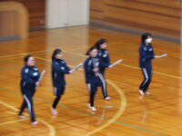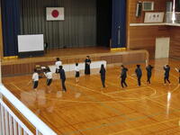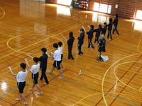 中学校の体育では剣道が始まりました。寒い体育館の中で、新聞紙を竹刀に見立てて、足運びや面打ちの練習を裸足でがんばっていました。