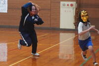 今回はリモートではなく、実際に会って交流しました。まず、お互いの総合的な学習の時間の取り組みを紹介し合いました。東浦はみかん、河野小は福祉の取り組みです。新しい学びがたくさんありました。後半はレクリェーションで、「ダルマさんが転んだ」「しっぽ取り」「ドッジボール」を思いっきり楽しみました。いつもと違う友達と、楽しいひと時を過ごすことができました。