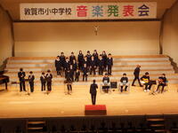 市民文化センターで行われた「敦賀市小中学校音楽発表会」に小中学生全員で参加しました。今年度で小学生は音楽発表会に参加することが最後になりました。「ふるさと」という曲に、「住むところはバラバラだけど、みんなで楽しく過ごすことができる大好きな場所・東浦という自分たちの思いを乗せながら、心を込めて歌うことができました。
