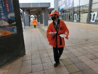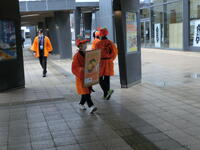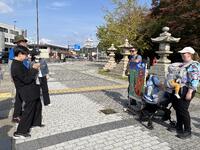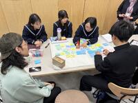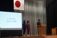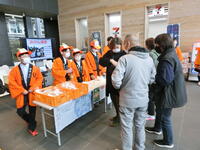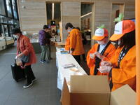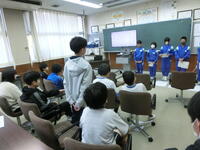 中学1年生が、敦賀に寄港した「ダイヤモンドプリンセス号」で訪れた来客に対して、道案内や写真撮影サービスなどのボランティア活動、東浦みかんのPR販売を行いました。敦賀高校創生部の皆さんにサポートをしてもらいながら活動に取り組みました。昼食時間には高校生と活動の振り返りをするなど、とても充実した時間となりました。