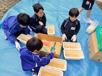 福井県独自のきのこである越前カンタケについて、県の専門の方から出前授業を受けました。きのこの種類や毒きのこについて学習したり、実際にプランターに菌糸を植えたりしました。最後は人気の調理法を教わりました。しっかり育てて、冬にみんなで食べたいですね。