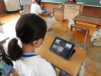 若狭町の熊川小学校とオンラインによる交流学習を行いました。小学3・4年生は、サツマイモ栽培や浦っ子発表会などの行事について発表しました。小学5・6年生は、みかんプロジェクトについての発表をしました。熊川小学校の発表に対しては、多くの質問や意見を言うことができました。これまでもオンライン交流を何度か経験しているため、とてもスムーズにやりとりをすることができ、楽しい時間となりました。