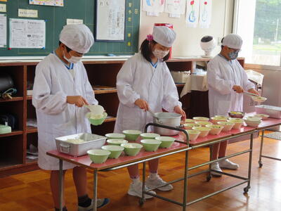 東浦小・中学校は、2名の調理員さんによる自校給食です。