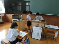 7月1日(金)、中1の音楽の授業では、アルトリコーダーで「かっこう」の主旋律を演奏してロイロノートに録音し、副旋律を吹きながら合わせる練習をしていました。何回か練習したあと、みんなで演奏してみると、見事にぴったり合った美しい合奏になりました。