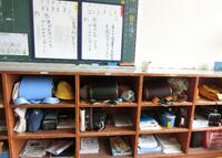本校は、月・水・金の週に3日、小中それぞれの縦割り班で掃除をしています。人数の割に校舎が広いので、一人として遊ぶ子やおしゃべりする子はおらず、どの場所も、黙々とてきぱきと作業しています。小さな学年の子も、一人で担当の場所を掃除しています。中には、駆け足で何カ所も掃除して回る班もあります。
