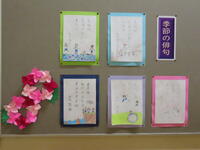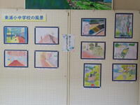 校内に児童・生徒の作品を掲示し、学びの成果を紹介しています。児童・生徒玄関を入ってすぐの「探究コーナー」には、小学6年生と中学2年生が東浦っ子タイムや浦っ子発表会で発表した内容をまとめたものを掲示しています。また、「日本文化を発信しよう」と題して、小学6年生が国語の授業でタブレットを使って調べ、まとめたものも紹介しています。先月、福井銀行様から寄贈いただきました大型プリンターのおかげで、迫力ある掲示物に仕上がりました。