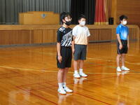 卒業した小学6年生4名が「新入生体験入学」に参加しました。登校後は中学校の教室に入り、入学に向けたオリエンテーションで学校生活へのイメージを膨らませました。その後、体育館で部活動体験を行い、中学1年生とトレーニングやバドミントンの基礎打ちの練習をしました。いよいよ中学校生活に向けての準備がスタートしました。