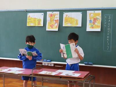 1、2年生で音読交流会を行いました。1年生は、大きな声ではっきりと音読することができました。2年生は、お話の様子が伝わるように強弱をつけたり、読むスピードを工夫するなどして堂々と音読することができました。