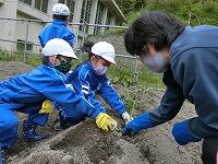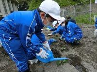 全校児童で畑にサツマイモの苗を植えました。秋にはたくさんのサツマイモを収穫できることが楽しみです。