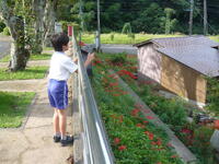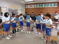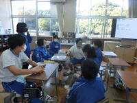小学校1年生は、「うみのかくれんぼ」という説明的文章の勉強をしていました。初めて読む文章も、すらすらと読んでいました。小学校4年生は、秋の生き物を探していました。気温の変化と共に、生き物の様子がどのように変わってくるか、バッタやチョウを捕まえて調べていました。小学校5年生は、花粉の働きを調べるための方法を考えていました。受粉と実のでき方の関係を調べるために、どんな実験をしたらいいのかを話し合い、決まったら早速準備にとりかかっていました。中学生は、小学校高学年と一緒に合唱の練習をしていました。学級ごとに練習していた『世界がひとつになるまで』と『星影のエール』の2曲を初めて合わせてみました。美しいハーモニーが広がって、11月に開催される敦賀市音楽発表会が楽しみになってきました。