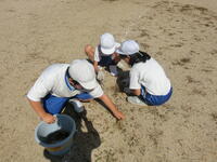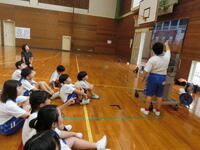 敦賀市運動公園プールで水泳学習を行いました。泳力に応じて2グループに分かれ、水に顔をつけることから、けのびやビート板を使ってのふしうきと、段階を追って練習しました。2回の休憩をはさみ、合計で1時間余りの練習ができました。特に、最後の自由練習時間では、友だちと競争したり、水に沈めたダイブボールを潜って拾ったりして、水泳の楽しさを体得することができました。