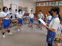 令和5年度1学期の終業式を迎えました。表彰(写生画コンクール、税に関する絵はがきコンクール)の後、校長先生より、1学期に子どもたちががんばったこと、できるようになったこと、たのしかったことを写真で振り返りながら、これまでの成長を確かめ合いました。2学期も、持久走記録会や浦っ子発表会、音楽学習発表会など、たくさんの行事が続きます。そして、中学3年生は、進路決定のための受験シーズンに突入していきます。1学期のがんばりを土台に、2学期もいろいろなことに「挑戦」していきましょう。