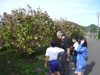 朝、夕すっかり涼しくなり、通学路の秋の自然の様子を観察に出かけました。サクラ、ヒガンバナ、エノコログサ(ねこじゃらし)、セイタカアワダチソウ、アジサイなどの葉や枝の色や芽の様子を観察し、タブレットで写真に収めました。この後、観察した結果を夏の頃と比べて違いを調べたり、秋の動物の様子を観察したりする学習へとつながっていきます。