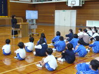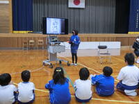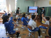 福井県庁の新幹線建設推進課の方を講師にお迎えして、4ヶ月後に近づいてきた北陸新幹線敦賀開業に向けての出前授業を受けました。時速200キロ以上で走る電車を「新幹線」ということ、大変安全な乗り物であること、スピードを出すためになるべくカーブの少ないコースを作っていること、トンネルはダイナマイトで爆発させて掘り進めていること、九頭竜川に自動車と新幹線が並行して走る日本で初めての橋を作ったこと、開業まで50年という長い年月がかかったことなど、たくさんのことをとても分かりやすく教えてくださいました。キャラクターを模した珍しい車両等、北陸新幹線以外の日本の新幹線のことも知りました。こんなにすごい新幹線が敦賀にやってくることを実感し、開業がますます待ち遠しくなった子どもたちです。