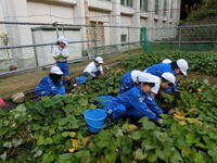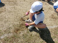 小学生がさつまいもを収穫しました。先日、試し掘りをしたときに、大きく育っていることがうかがえたので、今日は、学校畑に植えた90本の苗全て掘り返してみました。子どもたちの顔より大きいものから、手のひらに載る小さいものまで、全部で200個近くのさつまいもが収穫できました。泥を落として日陰に寝かせ、甘く熟成させていきます。11月23日のふれあいフェスタで、地域の方と一緒に焼き芋を作ることを、心待ちにする子どもたちです。