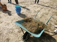 昼休み、グランドの草むしりをしました。中学生の体育係が指示を出し、全校児童生徒がグランドの外周に沿って散らばって、作業を進めました。10分程の時間でしたが、みんなで取った草は一輪車にいっぱいになりました。来週も、昼休みの時間を使って草むしりをする予定です。持久走記録会に向けて、自分たちが走るグランドを整えていきます。