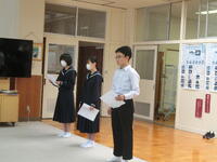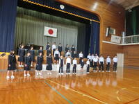 9月26日(火)昼休み、金曜日に迫った新人大会の壮行会を行いました。全校児童生徒の拍手で選手を迎えた後、選手決意の言葉で自分の目標や思いを伝え、生徒代表激励の言葉や校長先生の励ましの言葉などを通して、応援する気持ちを送りました。3年生が引退したあとも、一生懸命練習を続けてきた選手の皆さん、目標達成に向けて、全力を尽くしてきてください。