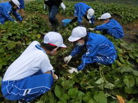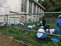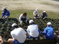 中学1・2年生が、技術(生物育成)の授業で野菜の栽培を始めました。植えた種類は、イチゴ、春キャベツ、リーフレタス、早生レタス、ラディッシュで、ラディッシュは種から育てます。育てる品種は自分たちで選び、育て方も自分たちで調べて育てます。収穫は、レタスがいちばん早く12月頃、イチゴは来年6月頃です。上手く育てられるか楽しみです。