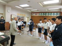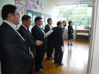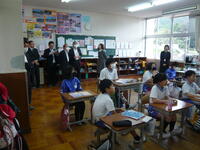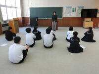青森県八戸市から、市議会議員の皆様が本校を視察にいらっしゃいました。八戸市では、地域の状況を踏まえて教育のあり方を考える時期に来ているということで、敦賀市の小規模特認校制度導入を受けて、本校の取り組みを参考にしたいと、青森県からはるばる1,200キロの道程を経て、本校までお越しくださいました。中学生は学力診断テストや確認テストに取り組んでいたため、小学生の業間運動や体育の授業、学級活動などの様子を見ていただきました。短い時間でしたが、「子どもたちの表情が生き生きとしていて驚いた」「先生方も元気で明るい」「地域とのつながりを感じる」「一人一人にきめ細かに対応していることが分かった」など、本校の良さを十分に感じ取っていただけたようです。有志の子どもたちが準備していたみかんのお土産も、とても喜んでくださいました。数ある全国の特認校から、本校を見に来てくださった八戸市議会の皆様、ありがとうございました。