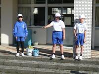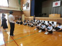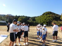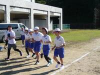 本番を2日後に控えて、全校で試走をしました。中学生の体育係が中心になって、準備体操やアップ、ペアの組み方を確認したあと、小学生の部と中学生の部に分かれて走りました。からりと晴れた秋空の下、全校の声援を受けながら、自分のペースで気持ちよく走れたようです。試走の後には、今年度3回目の避難訓練がありました。今回は「原子力災害」という想定で、日時の予告はしていませんでしたが、放送の内容を聞いた瞬間に、さっと自分で鼻や口を覆い、体についた塵を払い落として避難する様子がありました。試走もがんばりましたが、その後の切り替え力や対応力もすばらしい東浦っ子です。