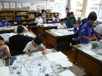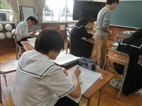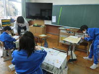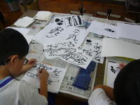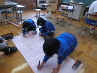 講師の先生方にお越しいただいて、己書講習会を開催しました。己書は「おのれしょ」と読み、「自分だけの書」という意味です。書き方に簡単なコツはありますが、こうしなければいけないというルールはありません。書き方や文字の書き順にとらわれることなく、自分が思うがままに自由に書いて、自分の世界観を楽しく表現する新感覚の書です。校区に己書の先生がいらっしゃることから、昨年に引き続き2回目の開催となりました。1~2限目に小学生、3~4限目に中学生が、講師の先生方に基礎を教えていただいてから、思い思いに筆を走らせ、完成した作品を発表し合いました。見守りボランティアの方に贈る感謝の言葉やクリスマスカード、年賀状、中には「座右の銘」を書いた子もいました。完成した作品は、11月23日の浦っ子発表会で展示します。見守りボランティア感謝の集いでは、日頃お世話になっている地域の方々にプレゼントしたいと思っています。浦っ子発表会にお越しの際は、子どもたちの展示作品もぜひご覧ください。