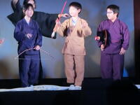 一般社団法人演劇集団ワンダーランドの方々による「からくり儀右衛門~日本のエジソン、技術で明治維新を創った人々」の演劇公演がありました。保護者や地域の方々にもお越しいただいて、全校児童生徒で観劇しました。本校の小5・6年生と校長先生が出演するシーンもあり、影絵や台詞、歌などで事前の練習の成果を発揮して、会場を沸かせていました。久留米出身の発明家で、多くの優れたからくり人形や万年時計などを製作し、蒸気機関や大砲を開発して、近代日本の科学技術のさきがけとなった「田中久重」の生涯を知り、歴史を学ぶと共に、夢に向かって挑戦することの大切さも感じ取ったようです。出演した子どもたちはもちろん、会場の全ての人にとって印象に残る素晴らしい公演になりました。ワンダーランドのみなさま、本日は大変ありがとうございました。