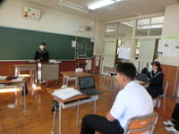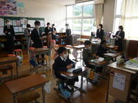 今日から3日間、小学生が登校しません。ちょっとさびしい校舎ではありますが、中学生はいつもどおり、少人数を活かして学習に取り組んでいました。昼休みには、先生方も入って、ドッジボールで盛り上がりました。小学生がいるときは力加減をしているそうですが、今日は中学生だけだったので、遠慮なしに思いっきりボールを投げ合ったそうです。遊びの場面でも、下級生のことを気遣って行動している中学生の優しい気持ちが分かりました。