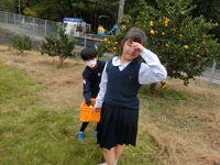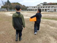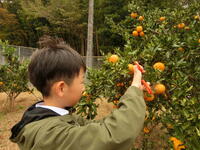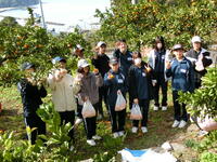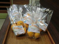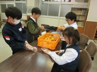 明日、青森県八戸市から、市議会議員の皆さんが視察に来られるということで、バス待ちの時間を利用して、小学4・5年生の有志が校庭のみかんを収穫してお土産を作りました。今年初収穫です。味見をしてみたところ、甘さと酸っぱさのバランスがとてもよく、濃厚な味わいのみかんに育っていることが分かり、思わず「おいしい!」という歓声が上がりました。子どもたちが大切に育ててきた校庭のみかん、喜んでいただけるといいですね。