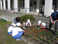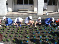 市より春苗(パンジー)が届いたので、小学生が業間と昼休みを使って新しい苗を花壇に植えました。さつまいもの苗植えの時は、小6男子が先生となって植え方を伝えましたが、今回も小5・6の3人が先生となって、あらかじめ考えておいた、赤、青、黄色の配置に注意しながら作業を進めました。11月とは思えないあたたかさの中、あたらしい苗も日光を十分に浴びて、強く育つといいですね。