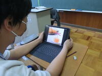 小学生は、教室いっぱいを使って読書感想画を描いていました。マット運動の授業では、自分の演技をタブレットで撮影して、ペアの子と直したほうがいいところを確認し合っていました。10秒遅れで再生できるように設定して、効率よく見返していました。中学生は、技術の授業で「キャビネットBOX」や「CDラック」のデザインをしていました。国語の授業では、「三大和歌集」についてまとめていました。