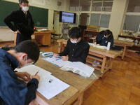 進路実現に向けて、中学3年生が放課後学習会を行っています。テスト問題を解いたり、分からないところを聞いたりして、自分の弱点を補強しようという意欲が伝わってきます。学習会以外にも、朝の会で各教科の問題を出したり、カウントダウンカレンダーで次の目標までの日数を掲示したり、受験生としての意識を高められるように、自分たちでアイデアを出して、いろいろなことに取り組んでいます。