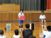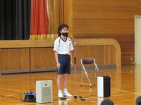 始業式の中で、校長先生から「目標を立てよう」「伝わるあいさつをしよう」というお話がありました。