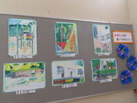 5・6年生の図工の授業で、水彩絵の具を用いて模様を作ったものが、