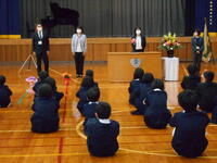 今年度最後の音楽の時間に、発表会を行いました。先生方がたくさん見に来てくれた中、緊張しながらも、2年生はピアニカで「かえるのうた」の合奏を、3年生はソプラノリコーダーで「日本の歌メドレー」をソロで演奏し、4年生は「エーデルワイス」の合唱を発表しました。(2番は英語で歌いました!)2年生から4年生まで合同で「ブラックホール」の合奏も披露し、最後は5年生が「ラバースコンチェルト」を、1人ずつ違う楽器を使って合奏しました。1年を通して音楽に親しんできた小学生。1年前にはできなかったことができるようになり、お互いの演奏を認め合い、お客さんからたくさんの拍手をもらって、自分の成長や音楽の楽しさを感じる発表会となりました。