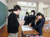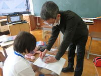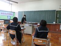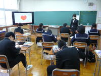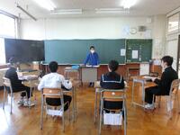 1年生は、道徳で「あなたがうまれた日」の授業をしていました。改めて、自分の誕生がいろいろな人の喜びとなり、たくさんの人に支えられて生まれてきたことを感じたようです。2、3年生は、学級目標の掲示物を作っていました。タブレットを使いこなす中学生ですが、あえて「筆」を使い、担任の先生も参加して、協働しながら手作り感のある1つの作品に仕上げており、「みんなで学級を作っていく」という真剣な気持ちが伝わってきました。