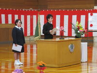 校長先生から、各学級それぞれに特に印象に残っているエピソードの紹介がありました。また、「この1年間で自分が成長したと感じるところは?」との問いに対して、「国語の音読がスラスラとできるようになった。」という児童や「自分の気持ちをコントロールできるようになった。」という生徒が、全員の前で発表する場面もありました。いろいろなことを経験しながら、児童生徒一人一人が大きく成長してきた1年間でした。