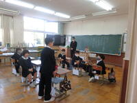 4月に入学予定の小学6年生が、体験入学にやって来ました。まず、中学1年生が学校生活について、小学校と中学校の違いや中学校生活へのアドバイスを具体的に伝えました。中学1年生と数学の合同授業も行い、協力して方程式の問題にチャレンジしました。その後は、部活動体験を行い、中学生と和やかに交流することができました。4月8日の入学式で会えることを心待ちにしています。