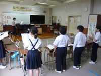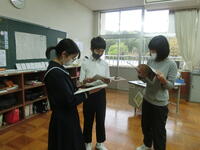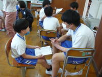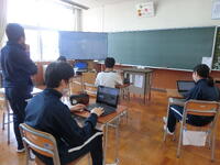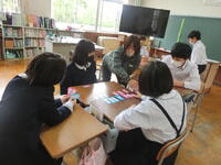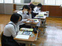 昨年度、金沢方面への修学旅行を大成功に終わらせた3年生ですが、今年度の校外学習について、それぞれが作ってきた「企画書」を見せ合い、どの案でいくかを相談していました。2年生は、最近校区に移住してくる方がいる現状を捉え、なぜこの地域を選ぶのか、東浦地区の魅力をどう考えているのか、聞いてみたいことを出し合って、インタビューする準備を進めていました。1年生は、「敦賀の食」をテーマにして、調べ学習をしていました。北陸新幹線開業に向けて、県外から訪れるお客さんの役に立つよう、食のマップを作ることになったようです。いずれの学年も、生徒が主体となっていきいきと活動しています。