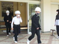 地震後の火災を想定した避難訓練を行いました。子どもたちには、近日中に避難訓練を行うことだけしか予告していませんでしたが、突然の緊急地震速報にもすばやく反応し、すみやかに机の下に身を隠すことができました。また、ヘルメット着用やグラウンドへの避難指示にも、無言で落ち着いて対応していました。全員避難完了まで2分10秒。とても速く行動できました。しかし、災害は、いつどこで起こるか分かりません。いつ、どこで災害に遭ったとしても、正しい判断とすばやい行動で自分の身を守れるよう、想定をより難しくして、今年度も継続して訓練を行っていきます。