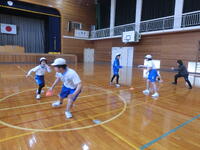 児童会が企画する「全校遊び」を昼休みに行いました。今回は「こおりおに」と「どろけい」で遊びました。赤ぼうしの人が「おに役」です。1年生から6年生まで、学年関係なく駆け回るので、低学年の児童も、遊びの中で自然と体力や走力が身についていきます。時間いっぱい、体育館を縦横無尽に走り回って楽しむ様子がありました。
