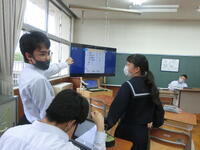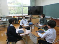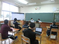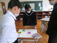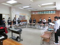 中学1年生が、「私たちの学校のよさ」について自分の考えを出し合って整理し、お互いの考えを結びつけてまとめたことを、校長室を訪れて発表しました。学校のよさの中核を「全員が中心になれる」とし、具体例として「いろいろな行事」「小中合同の授業」「地域の人とのふれあい」の3つの場面を挙げて、筋道立てて分かりやすく説明していました。少人数だからこそできる「一人一人が中心となって活躍できる」東浦小・中学校のよさに、自信をもっていることが伝わってきました。様々な活動を通してプレゼン力を養ってきた中学1年生ですが、1年間の集大成としてふさわしい、説得力のある発表でした。